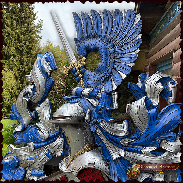 Unter anderem hat er sich auf das Gestalten, Schnitzen und fassen von Wappen aller Art spezialisiert. Seine Wappen sind mit Liebe zum Detail kunstvoll von Meisterhand geschnitzt. Er fertigt jedes Wappen in jeder Art und gewünschten Größe und bereichert somit seine adeligen Kunden die bürgerlichen Familien von Heute über die Zeit hinaus mit einem sichtbaren Zeichen. Ein Zeichen für Familie und Zusammenhalt vererbbar von Generation zu Generation, denn ein Wappen ist wie ein wertvolles Dokument.