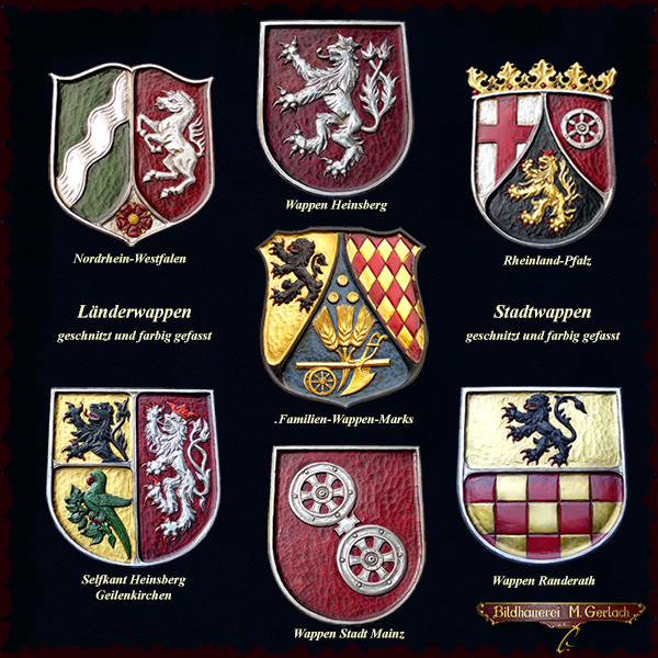 ......einige von Bildhauermeister Manfred Gerlach geschnitzte und farbig gefasste Stäte- und Länderwappen.